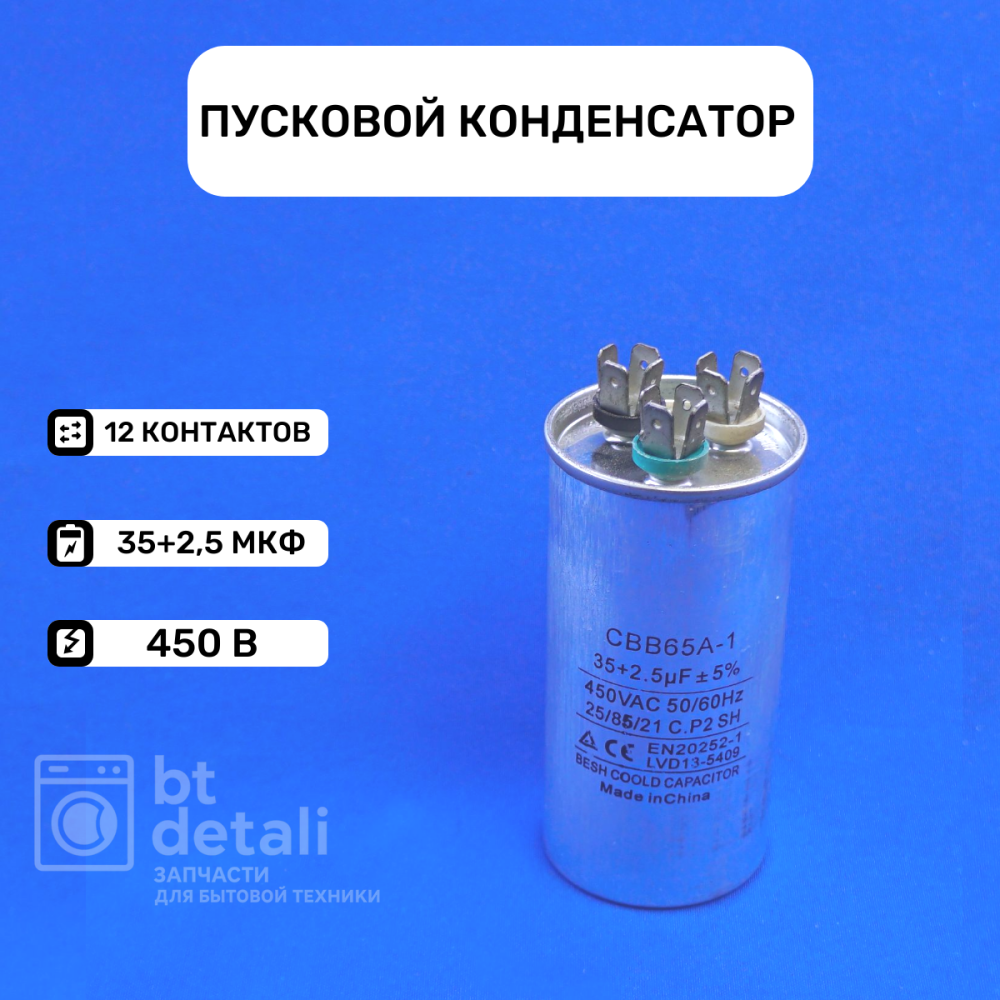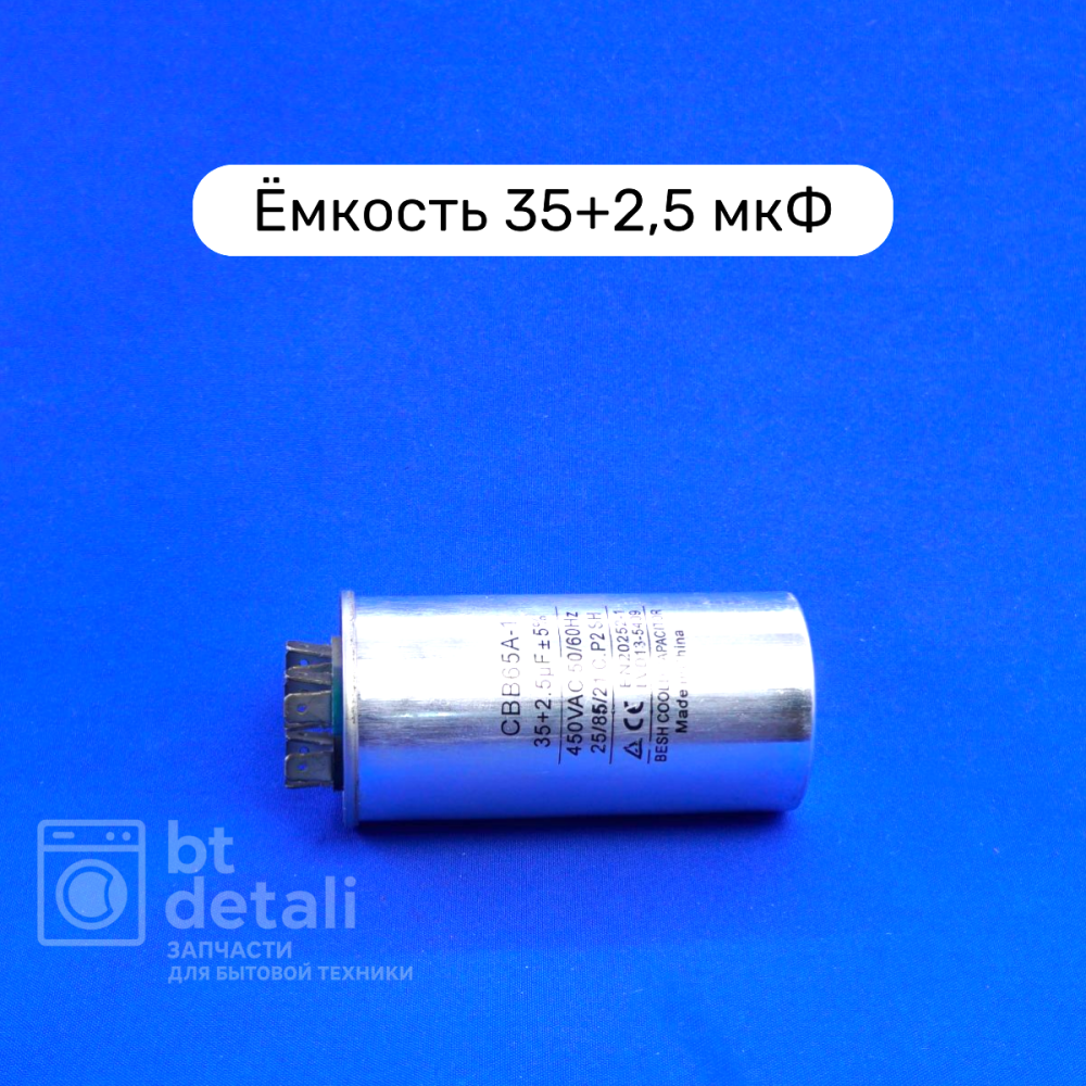 Емкость: 35 + 2,5mF (микрофарад), что позволяет использовать его для различных приложений, требующих двух емкостей.