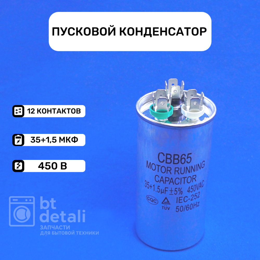 Конденсатор пусковой CBB65 35+1.5mF 450V предназначен для запуска и стабилизации работы электродвигателей в различных устройствах. Он идеально подходит для использования в кондиционерах, сплит системах, холодильниках, морозильных камерах и холодильных витринах. Благодаря высоким техническим характеристикам, этот конденсатор обеспечивает надежную работу и долговечность вашего оборудования.