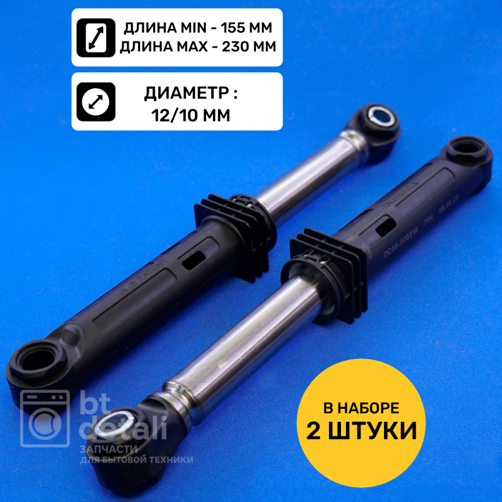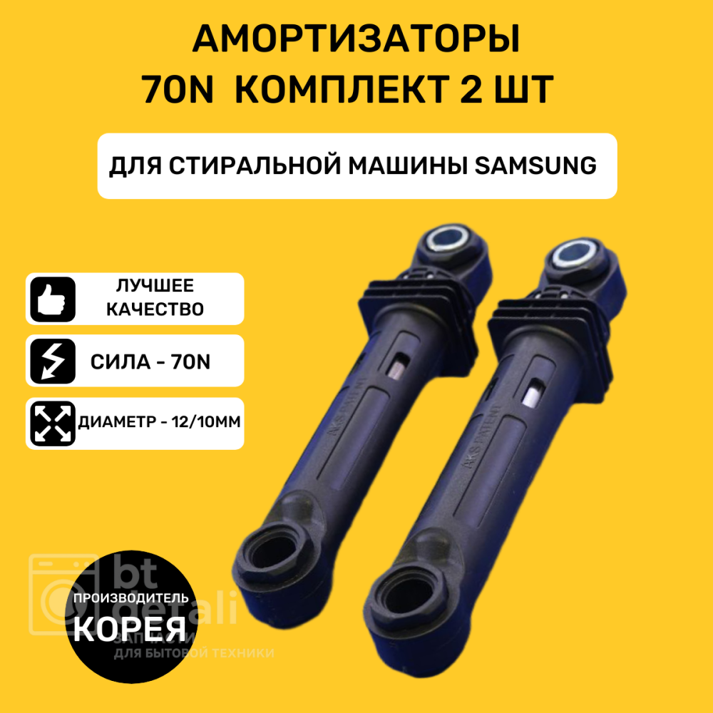 Амортизаторы 70N для стиральной машины Samsung (комплект 2 шт) DC66-00531A – надёжные детали для ремонта стиральных машин. Предназначены для снижения вибрации и шума при отжиме. Усилие 70 ньютонов обеспечивает стабильную работу устройства и предотвращает износ других компонентов.