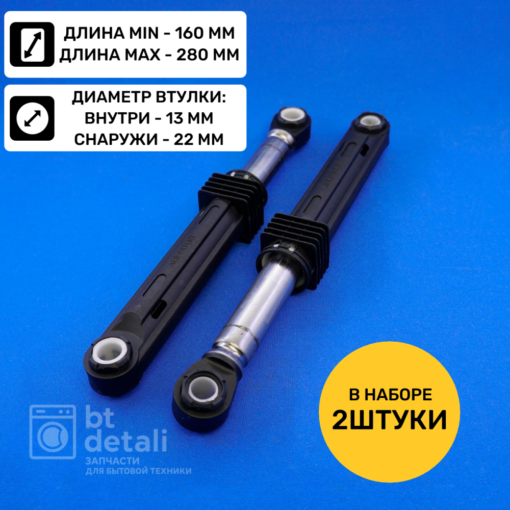 Технические характеристики Амортизаторы 100 N для стиральной машины LG комплект 2 шт 4901ER2003A c загрузкой до 6 кг